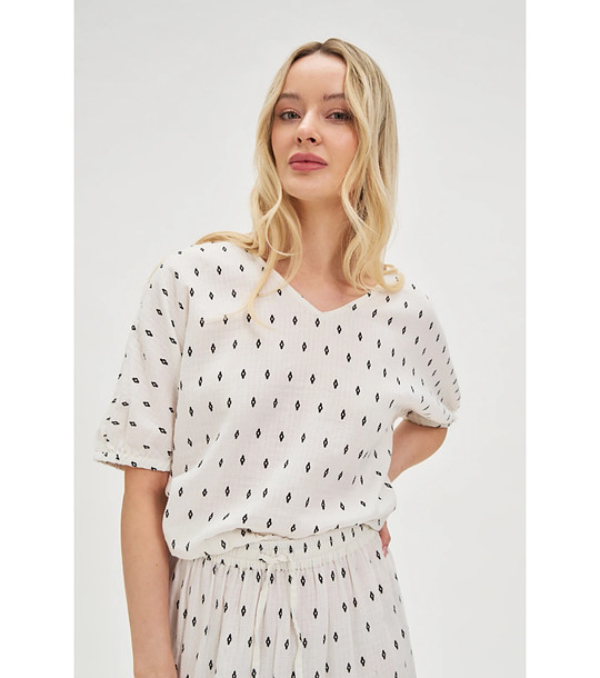 Bluză de damă din bumbac de culoare crem cu imprimeu contrastant