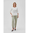 Moodo Bluză de damă din bumbac de culoare fildeș Decolteu rotund
