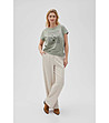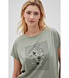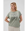 Moodo Bluză de damă din bumbac de culoare măsline Decolteu rotund
