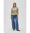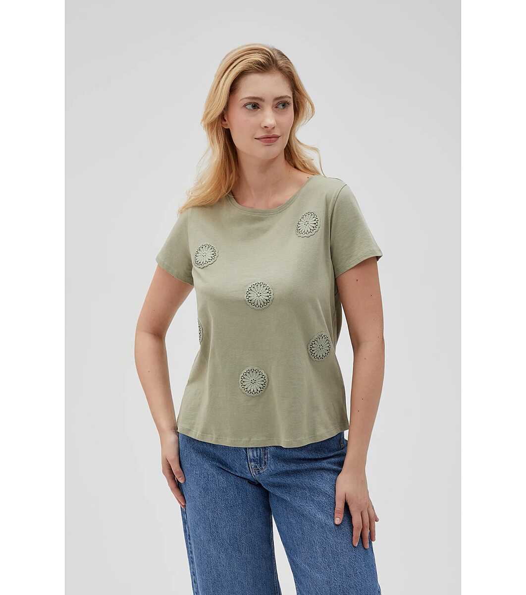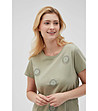Bluză de damă din bumbac de culoare măsline cu motive florale