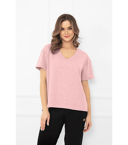 Italian Fashion Bluză de damă din bumbac, în culoarea melanjului roz, Klara Mânecă scurtă
