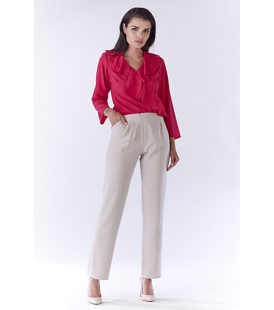 Awama Bluză de damă din ciclam Keila Decolteu în V cu volane