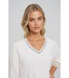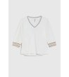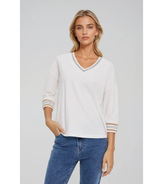 Moodo Bluză de damă ecru cu decolteu în V Bluză dreaptă de damă cu decolteu în V