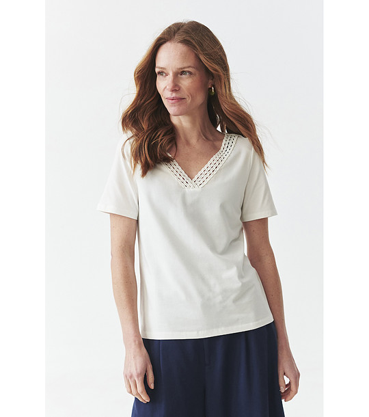 Tatuum Bluză de damă ecru cu decolteu în V Milly Bluză de damă cu croială dreaptă și mâneci scurte.