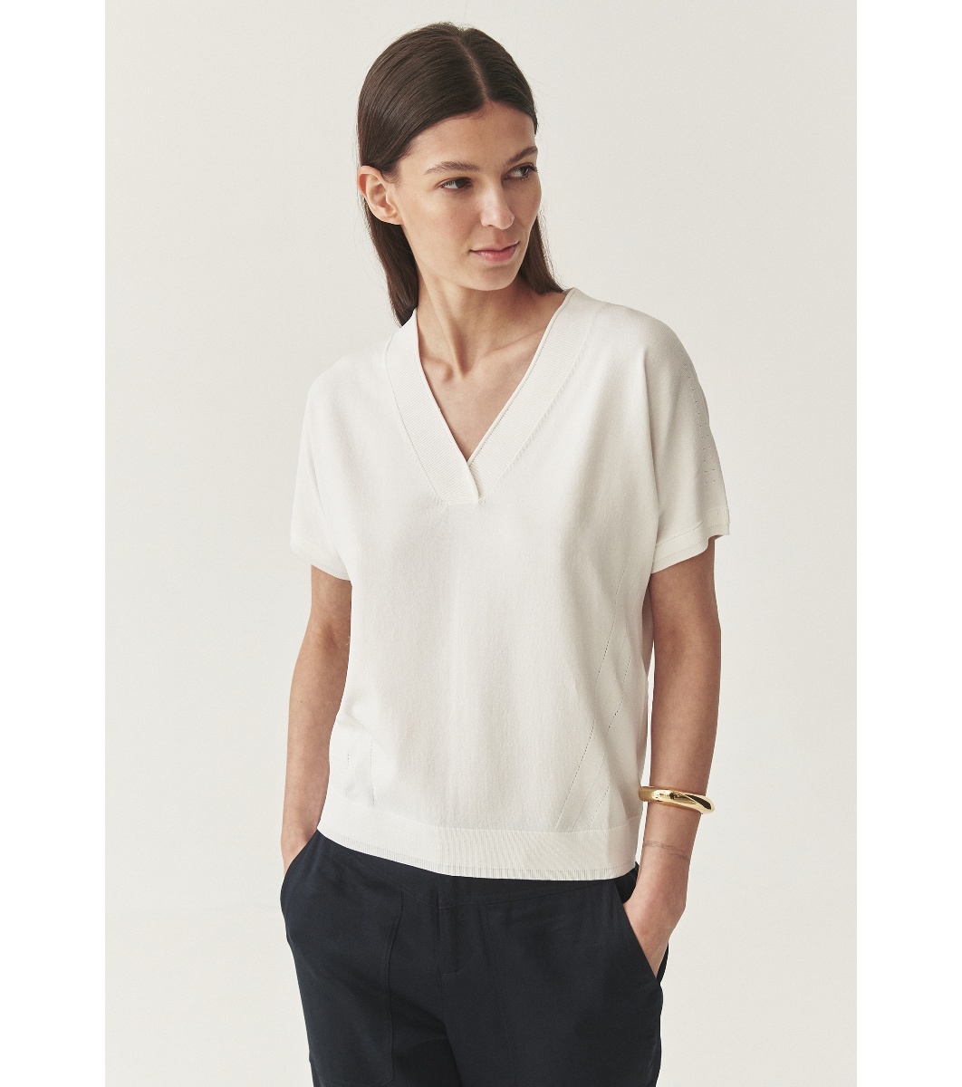 Bluză de damă cu decolteu în V și mâneci scurte.
