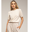 Tantra Bluză de damă ecru cu decorațiuni la decolteu Decolteu rotund cu decorațiuni