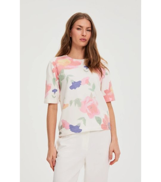 Moodo Bluză de damă ecru cu flori Croială dreaptă