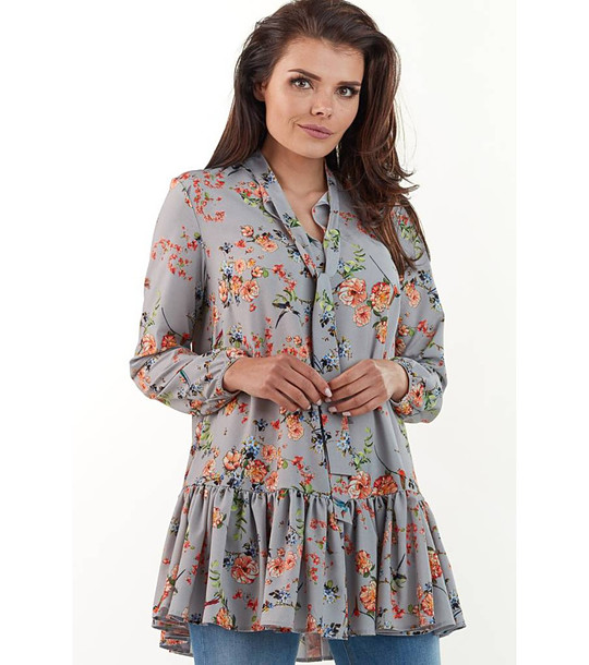 Infinite you Bluză de damă gri cu imprimeu Dili Legătură la decolteu