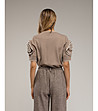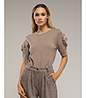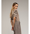 Tantra Bluză de damă maro cu garnitură albă Decolteu rotund
