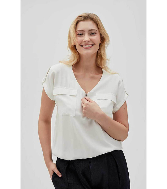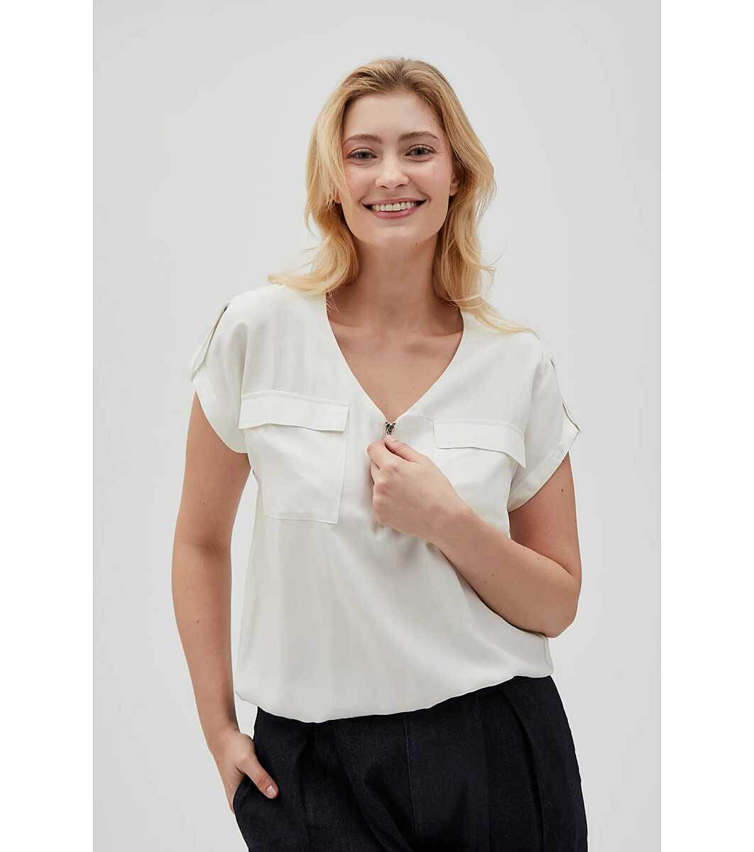 Moodo Bluză de damă în culoarea fildeș Decolteu în V cu fermoar