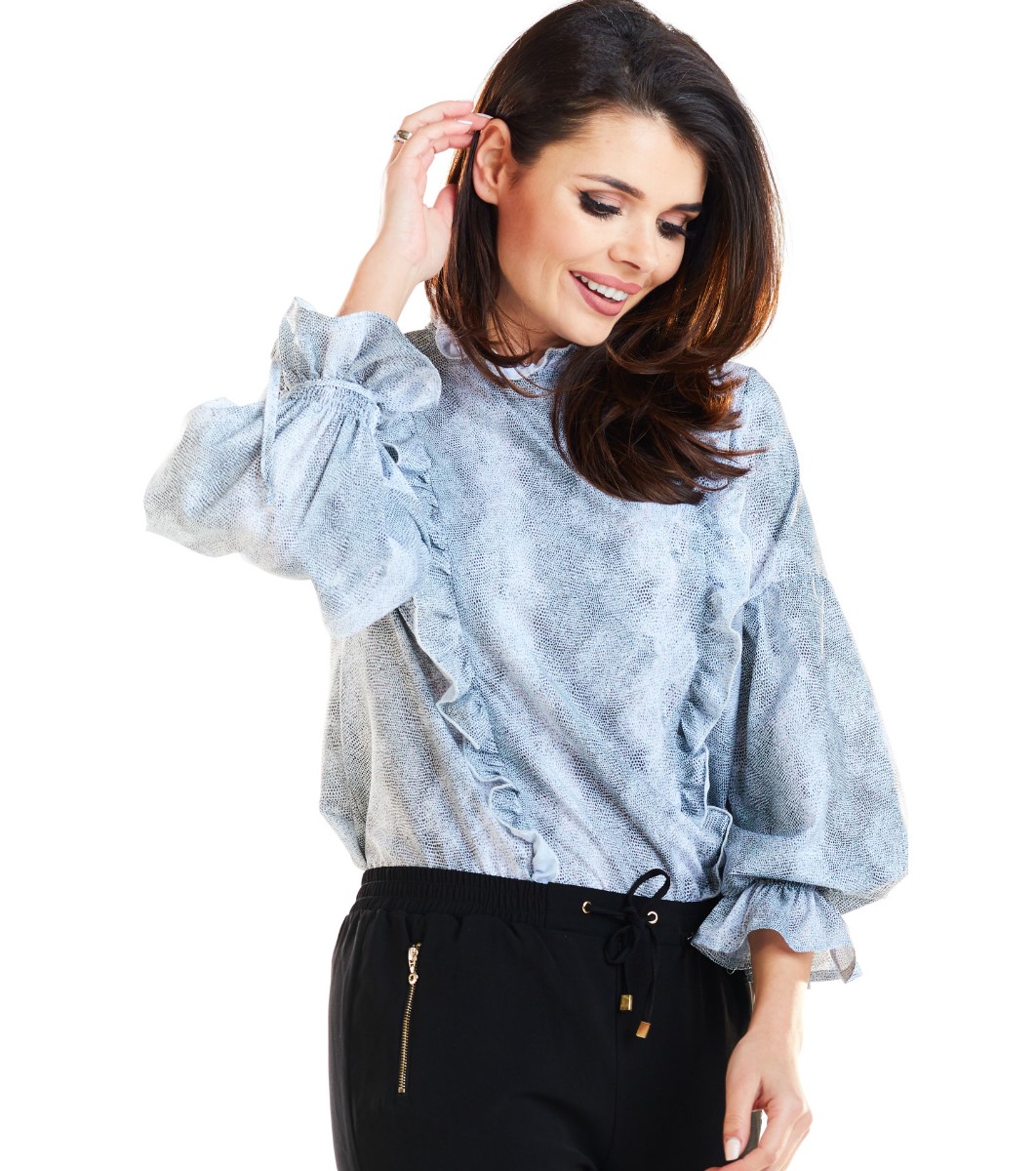 Awama Bluză de damă în nuanțe de gri cu volane Gladis Decolteu rotund cu volane