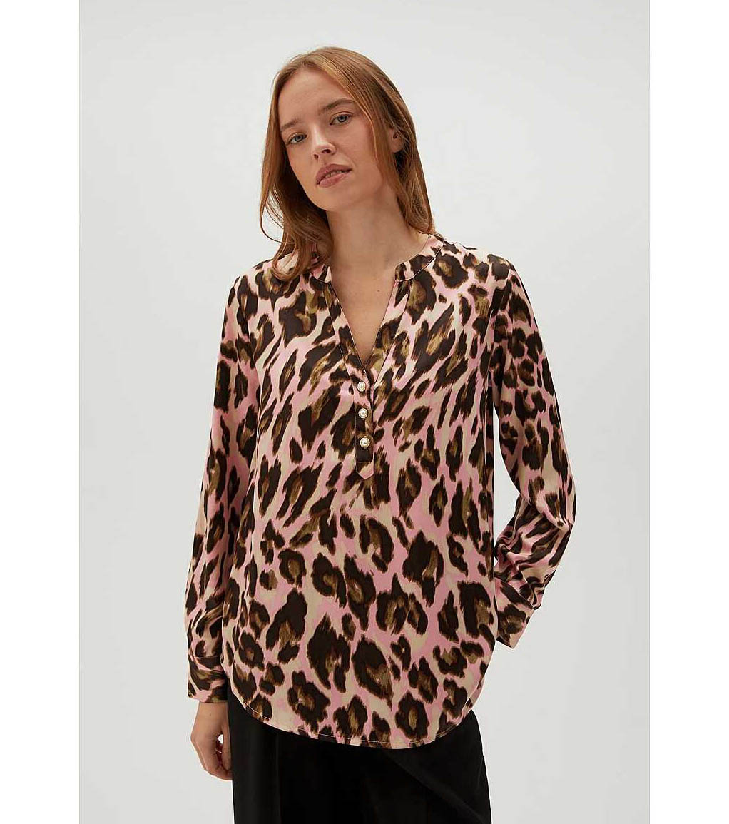 Moodo Bluză de damă în roz și maro Decolteu în V