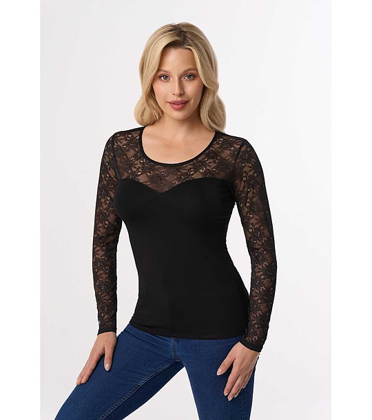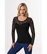 Bluză de damă neagră cu dantelă MEREDITH