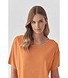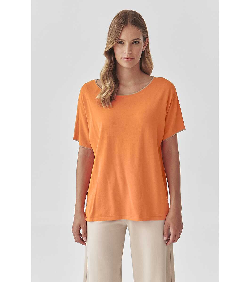 Tatuum Bluză de damă portocalie ESTETINA Decolteu rotund cu bordură gri