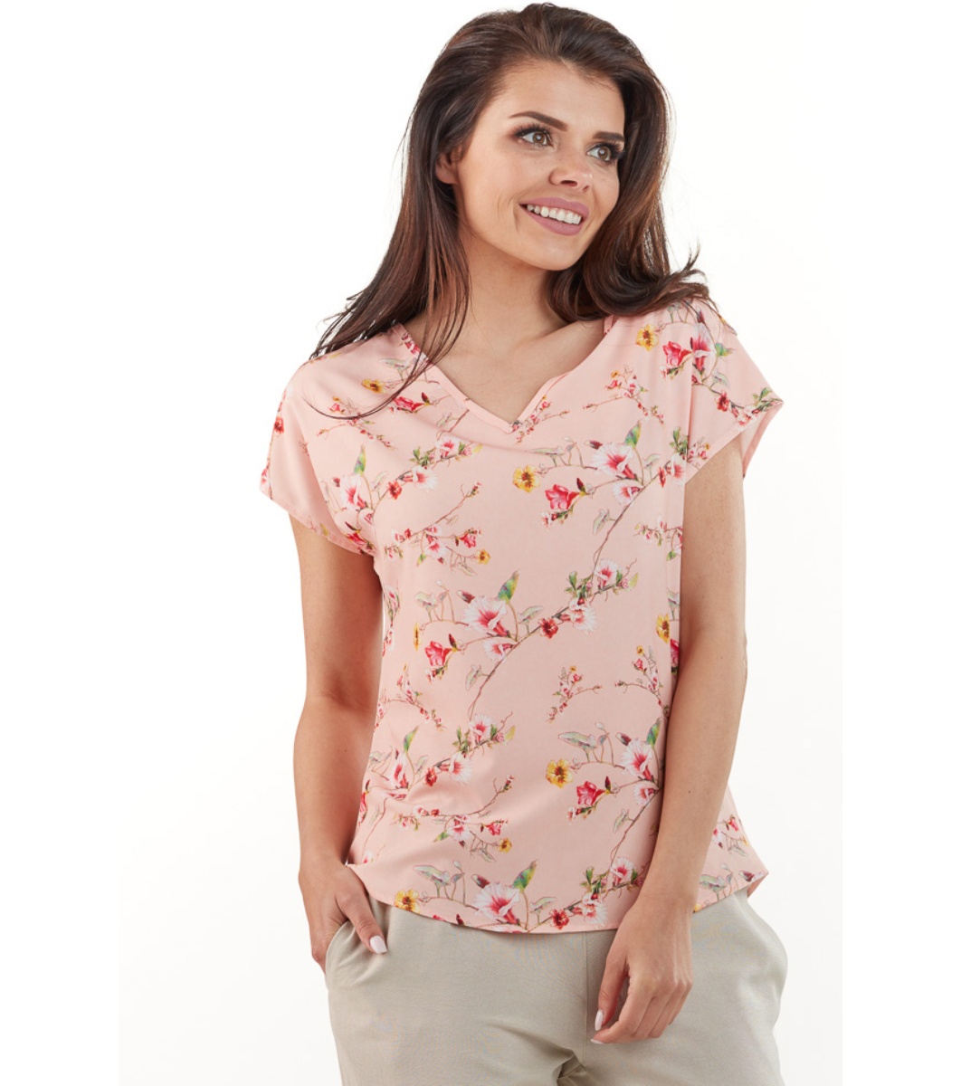 Infinite you Bluză de damă roz cu imprimeu Thalia Decolteu în V