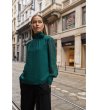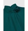 Moodo Bluză de damă verde închis cu floare decorativă Guler înalt cu floare decorativă