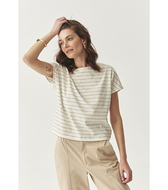 Tatuum Bluză din bumbac de culoare ecru cu dungi Dina Bluză de damă cu croială dreaptă și dungi fine orizontale.
