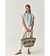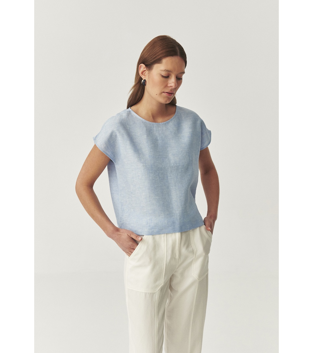 Bluză din in albastru deschis cu mâneci scurte
