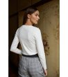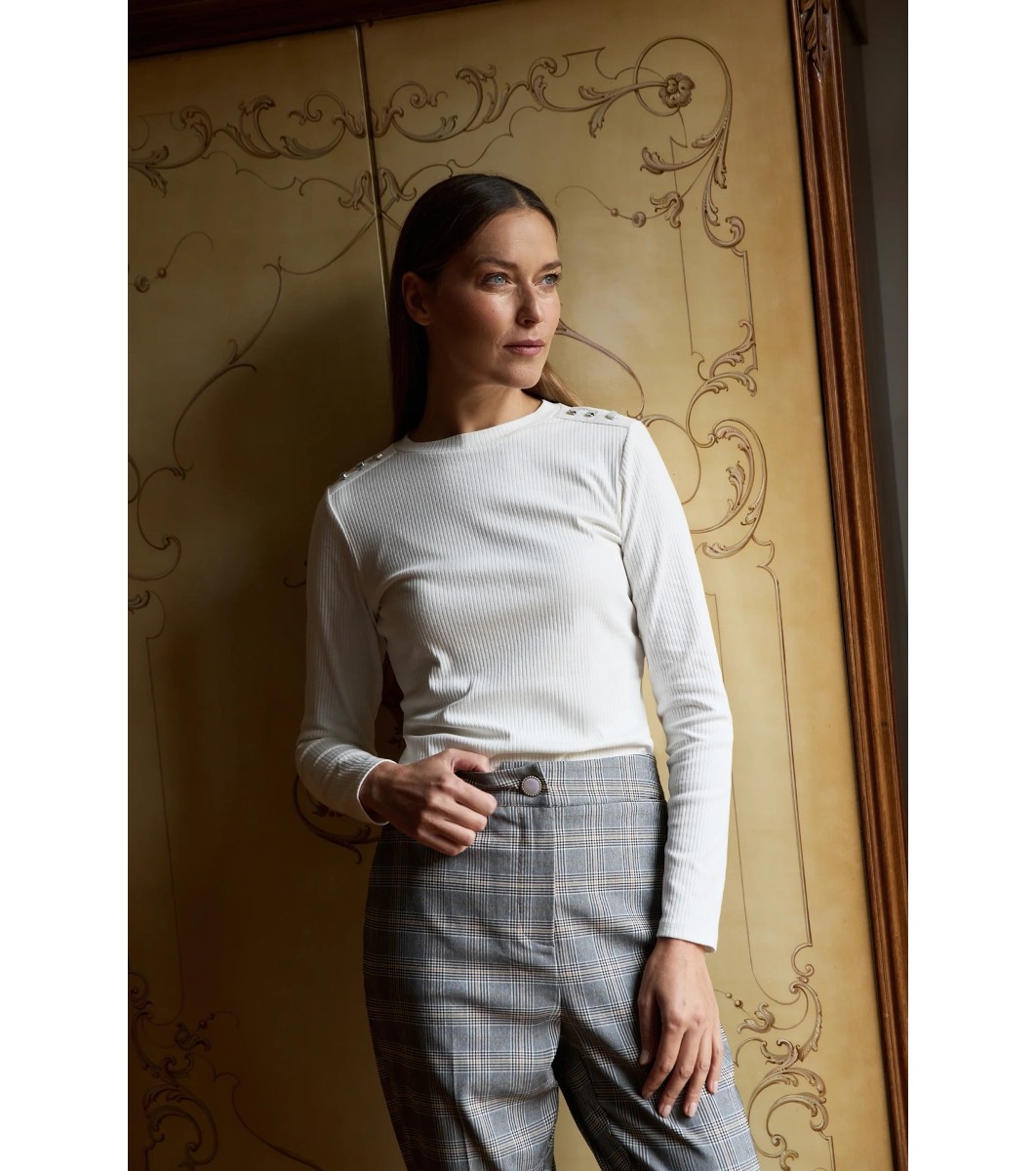 Moodo Bluză ecru cu mâneci lungi și nasturi pe umeri L-TS-4900 Tricotaj fin cu nervuri în relief.