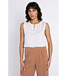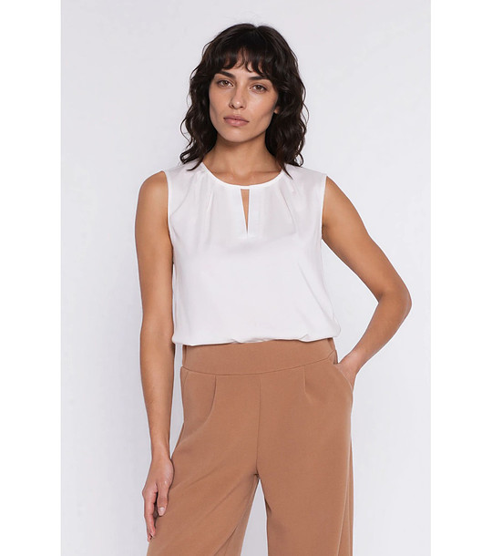Bluză ecru fără mâneci cu accent în V