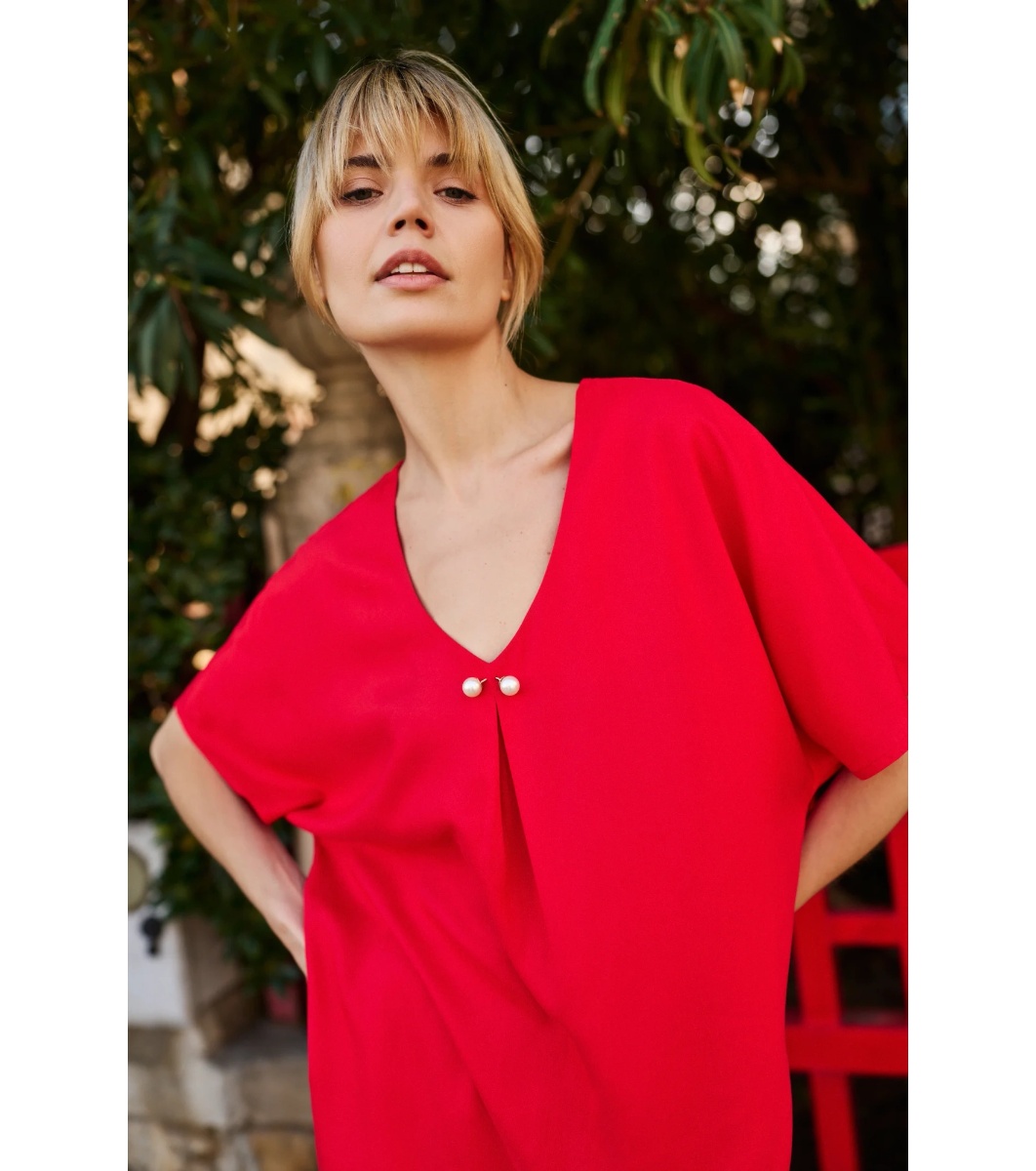 Moodo Bluză elegantă de damă, în culoarea roșie Decolteu în V