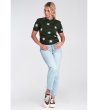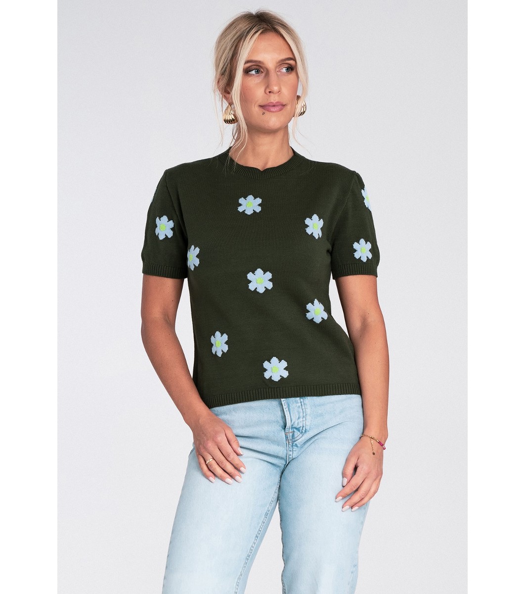 Figl Bluză florală verde închis pentru femei, Mona Decolteu rotund