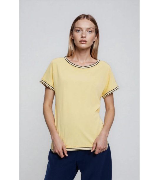 Moodo Bluză galbenă de damă cu margini contrastante Decolteu rotund