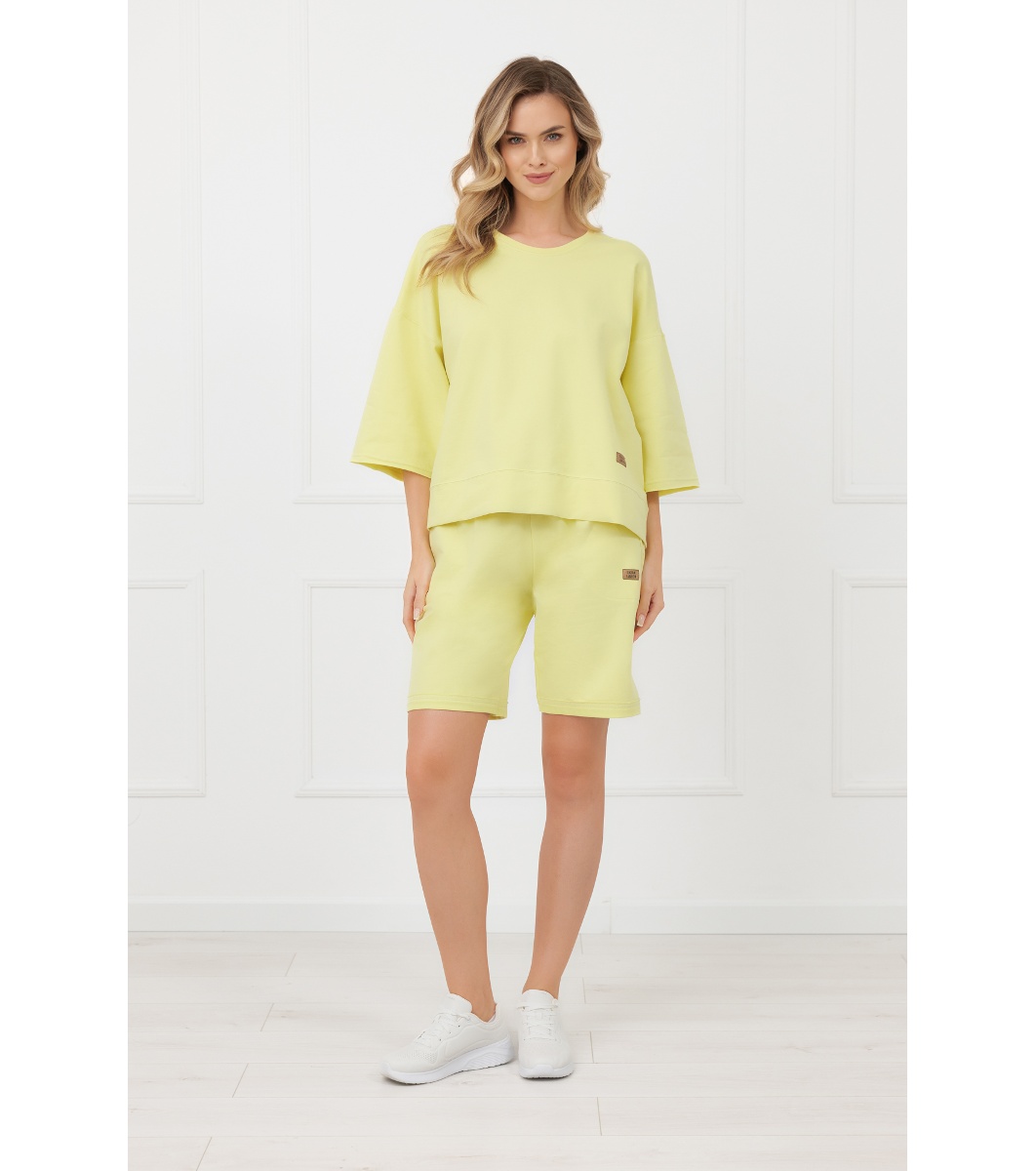 Italian Fashion Bluză galbenă din bumbac cu mâneci 7/8 KAORI Model lejer cu decolteu rotund.