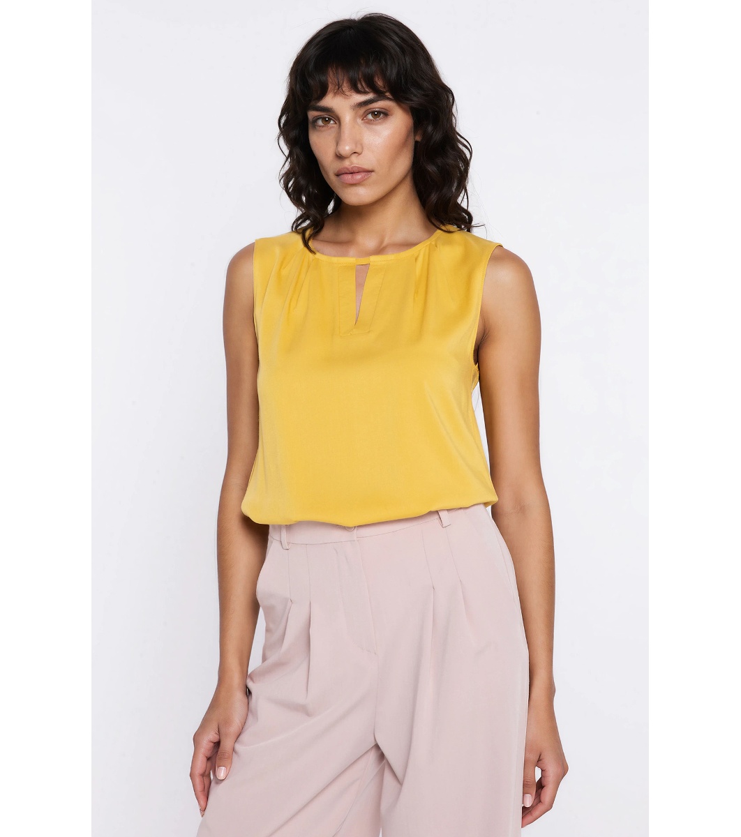Bluză galbenă fără mâneci cu deschizătură în V