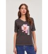 Bluză gri din bumbac pentru femei cu imprimeu