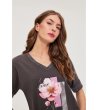 Moodo Bluză gri din bumbac pentru femei cu imprimeu Decolteu în V