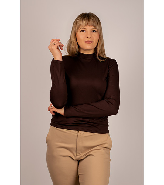 Babell Bluză maro de damă cu guler polo Resta Guler polo