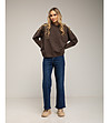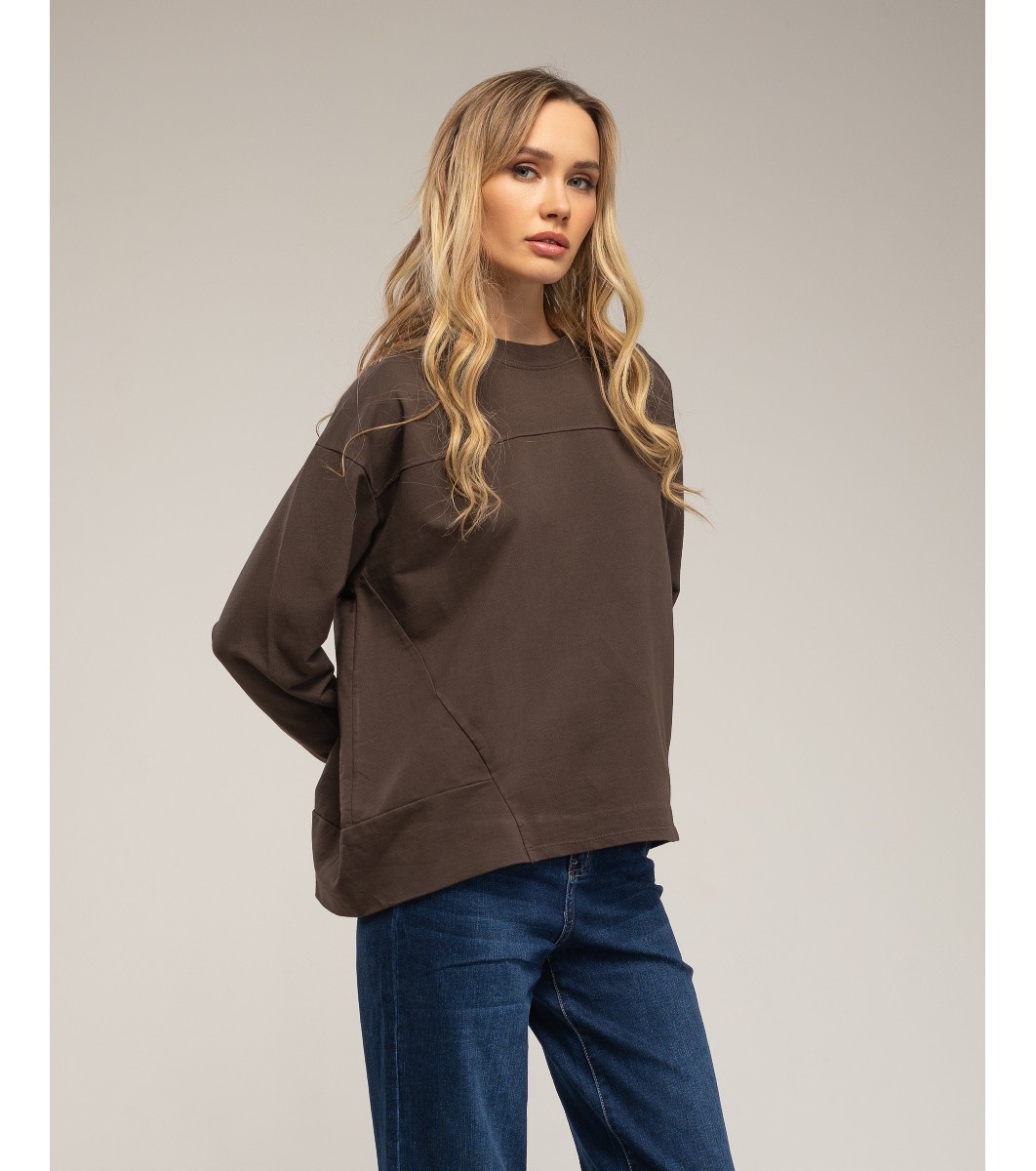 Tantra Bluză maro supradimensionată din bumbac pentru femei Decolteu rotund