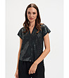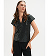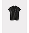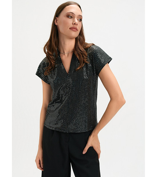 Top Secret Bluză neagră cu efect metalic și decolteu în V Bluză cu mânecă scurtă