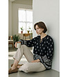 Bluză neagră cu imprimeu și broderie NOIR