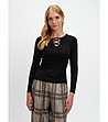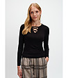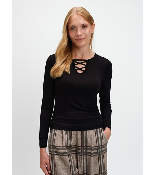 Bluză neagră cu mâneci lungi și bretele împletite la decolteu