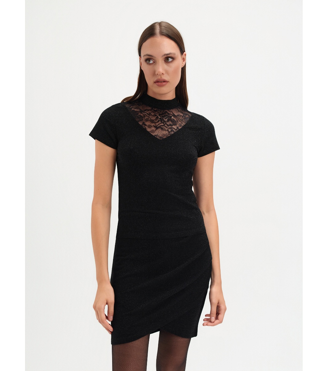 Top Secret Bluză neagră de damă cu inserție de dantelă Croială mulată