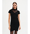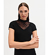 Bluză neagră de damă cu inserție de dantelă