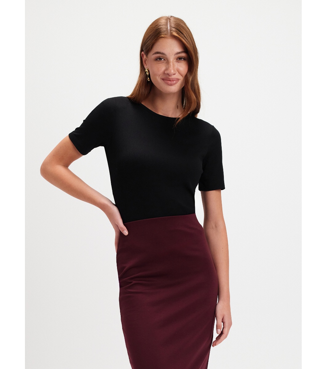 Top Secret Bluză neagră de damă, cu mâneci scurte, cu nervuri Cu mâneci scurte și decolteu rotund