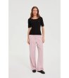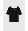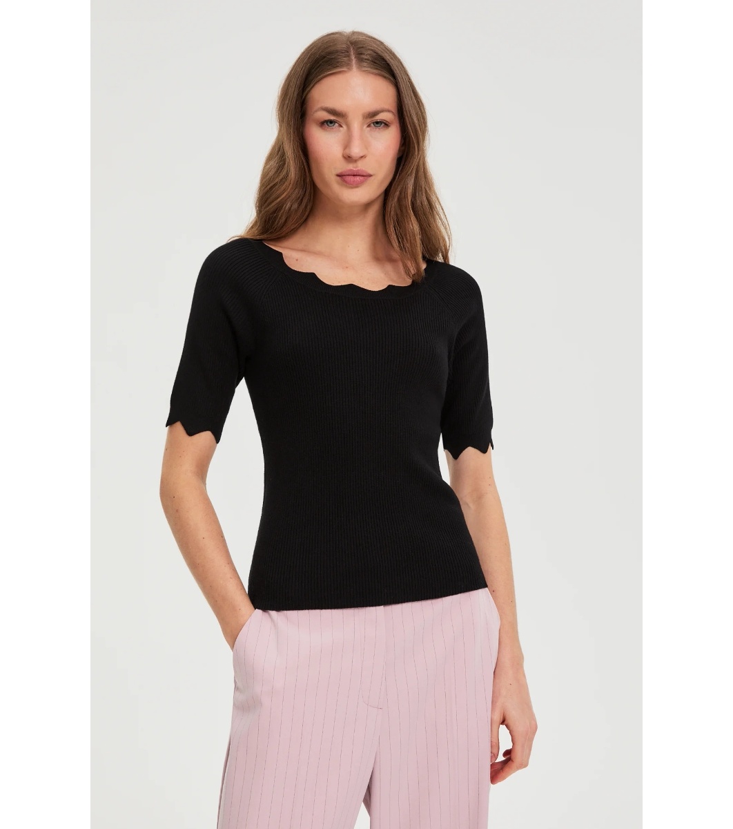 Moodo Bluză neagră de damă cu mâneci scurte și decolteu ondulat Bluză tricotată cu structură striată pe corp