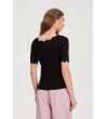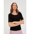 Bluză neagră de damă cu mâneci scurte și decolteu ondulat