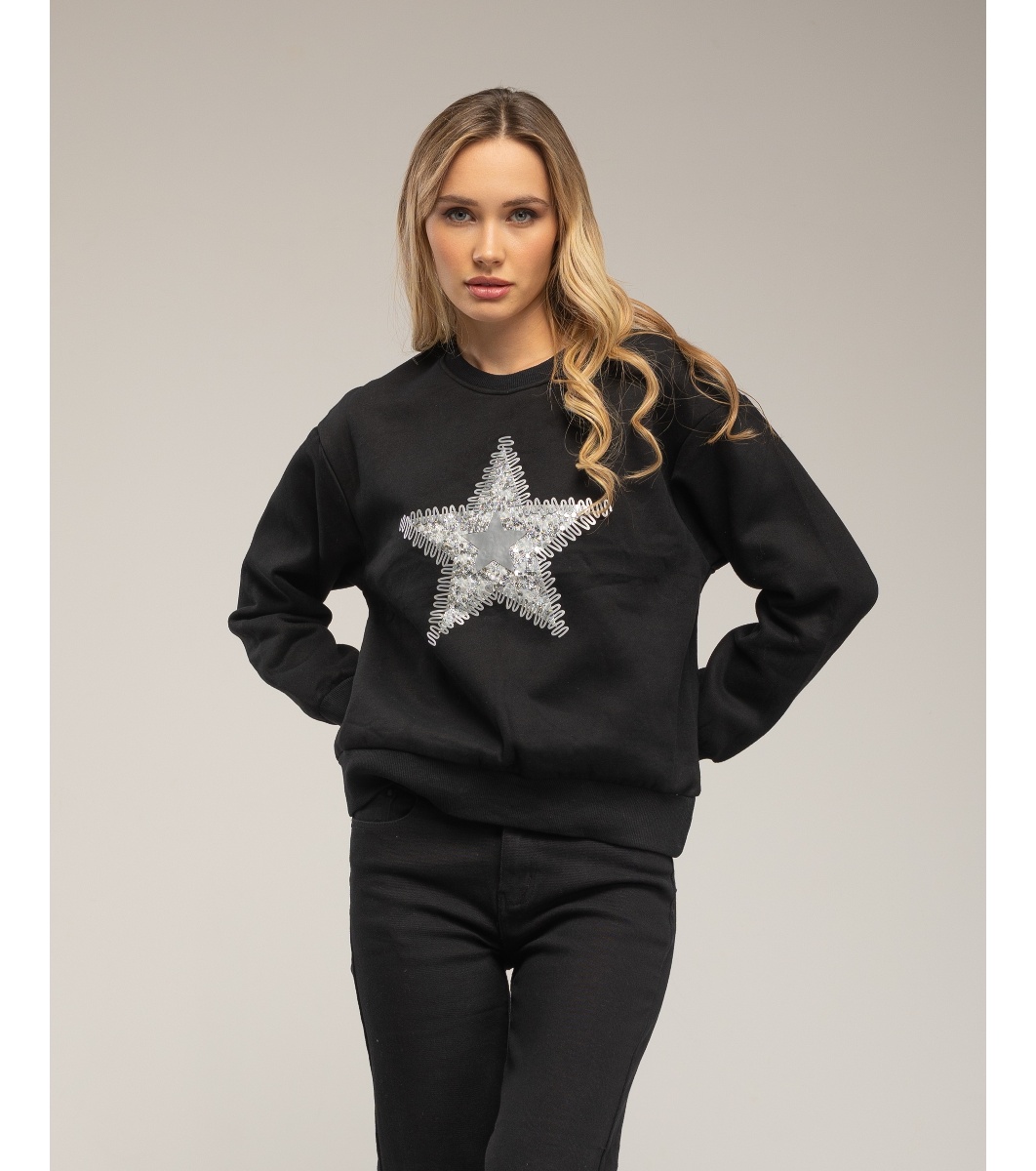 Tantra Bluză neagră de damă cu stea Decolteu rotund