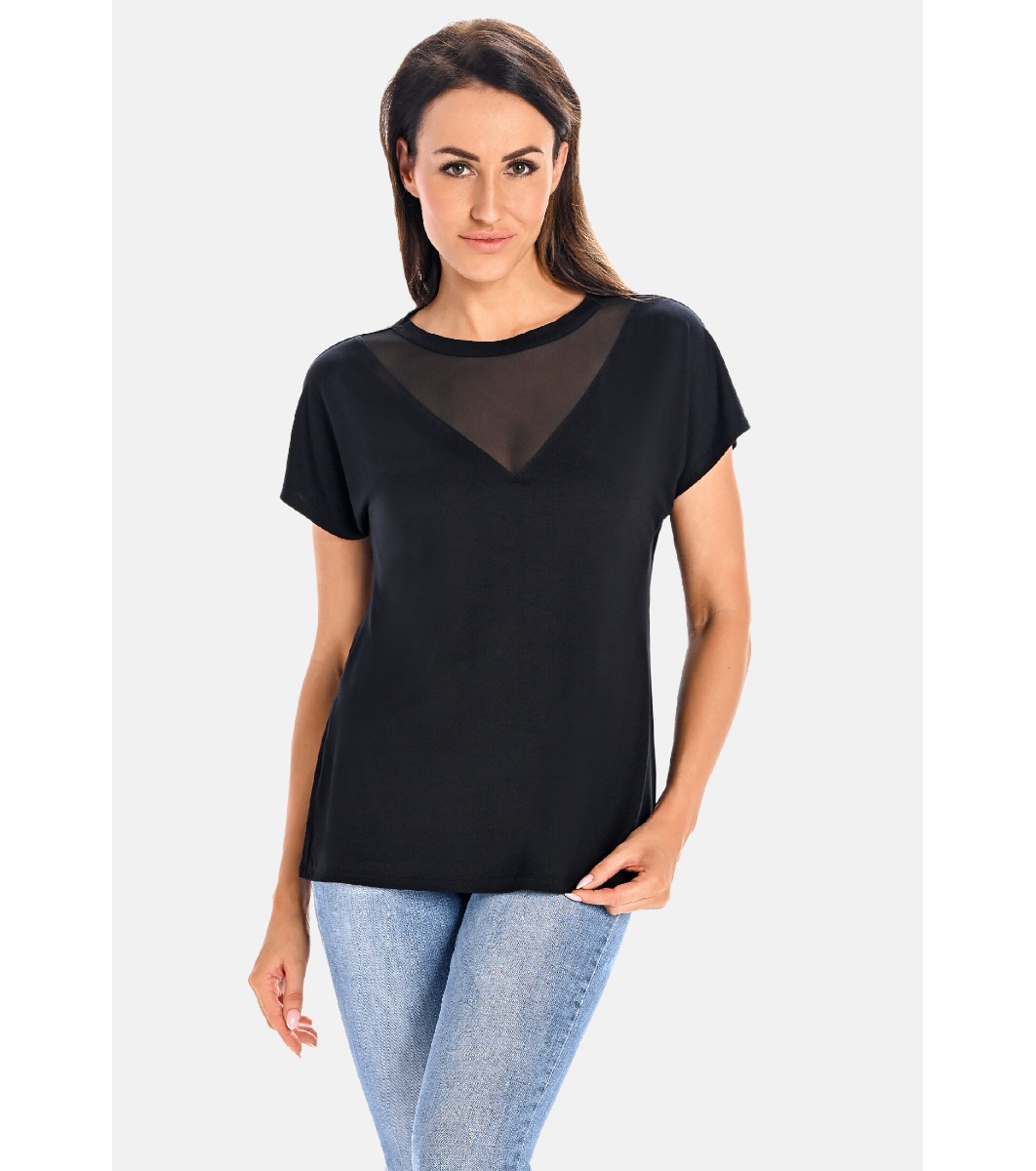 Teyli Bluză neagră de damă cu tul Cora Bluză de damă din bambus cu panouri de plasă pe decolteu. Fabricată din bambus, bluza nu este doar ecologică, ci și moale, ușoară și respirabilă, fiind ideală pentru purtare zilnică și sport.