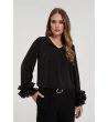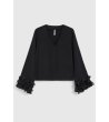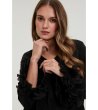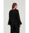Moodo Bluză neagră de damă cu volane la mâneci Decolteu în V