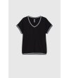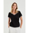 Moodo Bluză neagră de damă din bumbac Decolteu în V