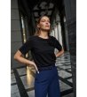 Moodo Bluză neagră de damă din bumbac cu flori 3D Decolteu rotund