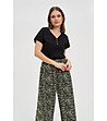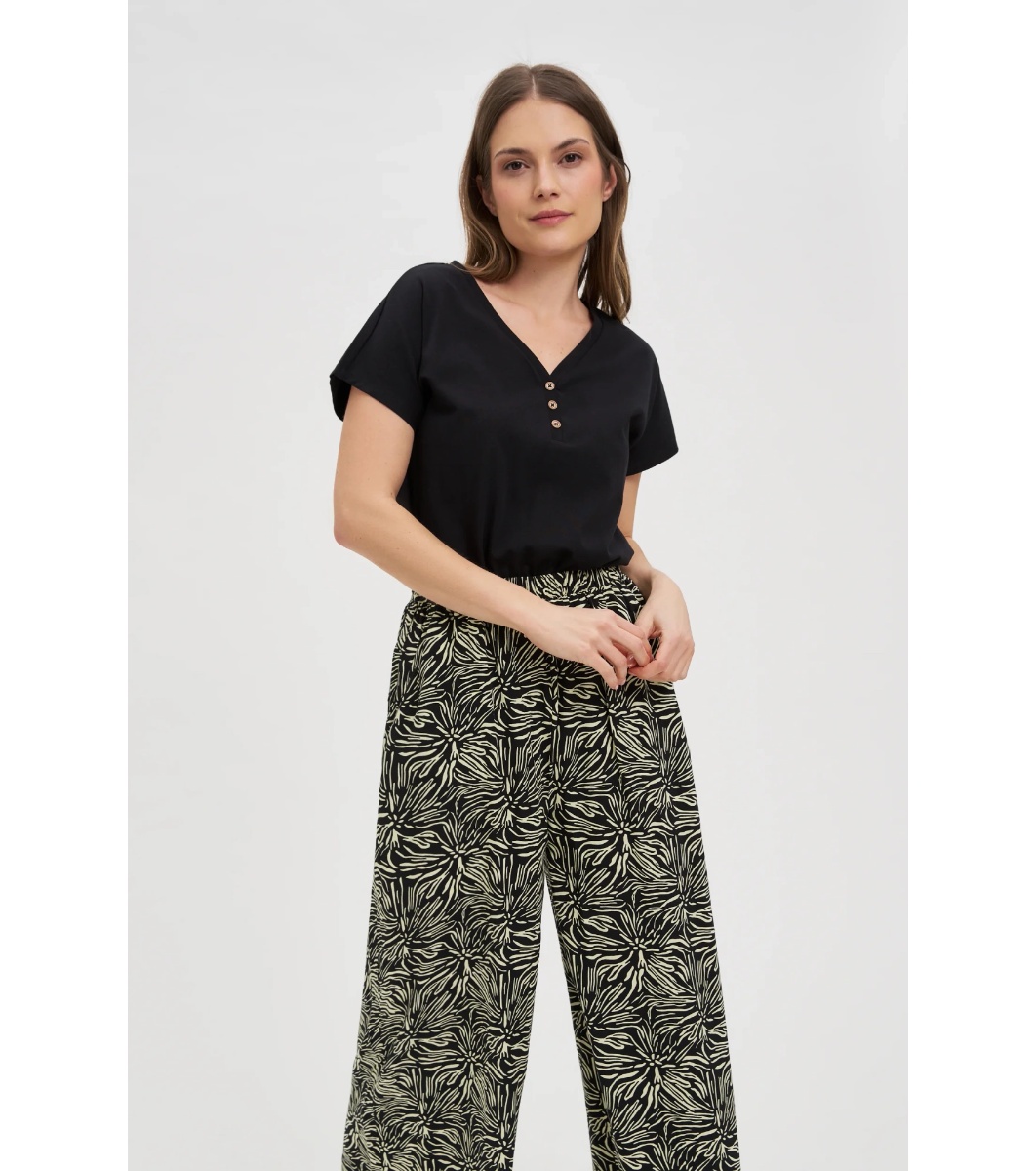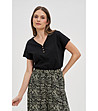 Moodo Bluză neagră de damă din bumbac cu nasturi Decolteu în V