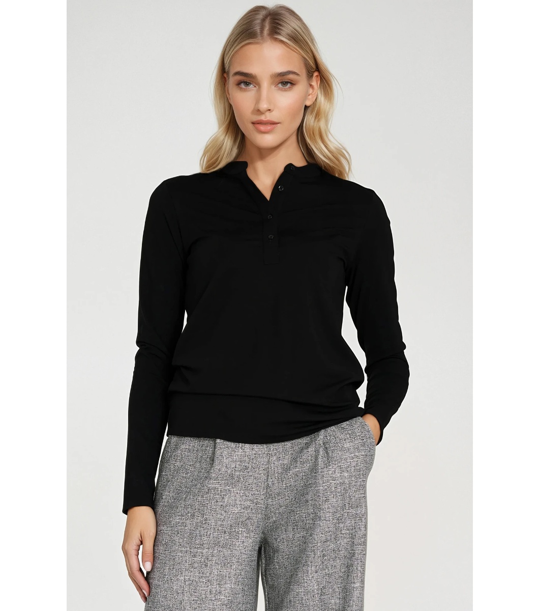 Nife Bluză neagră supradimensionată de damă Decolteu rotund cu nasturi