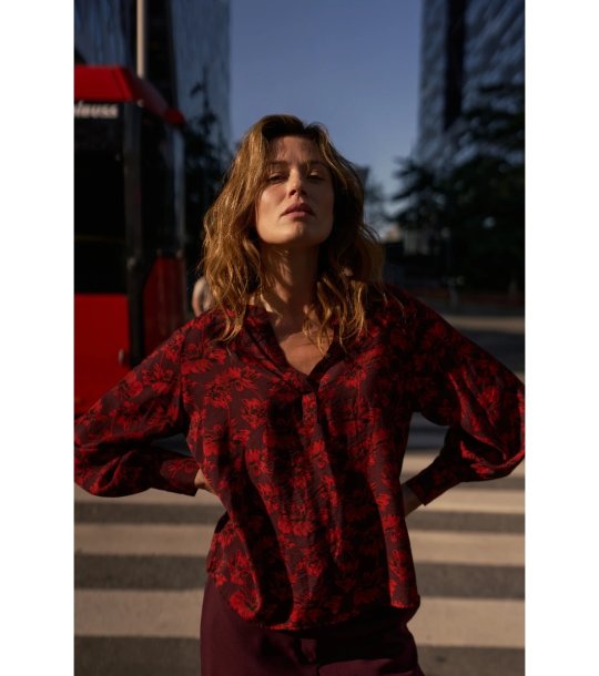 Moodo Bluză roșie de damă cu imprimeu floral Decolteu în V