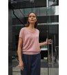 Moodo Bluză roz de damă cu fire strălucitoare Decolteu în V